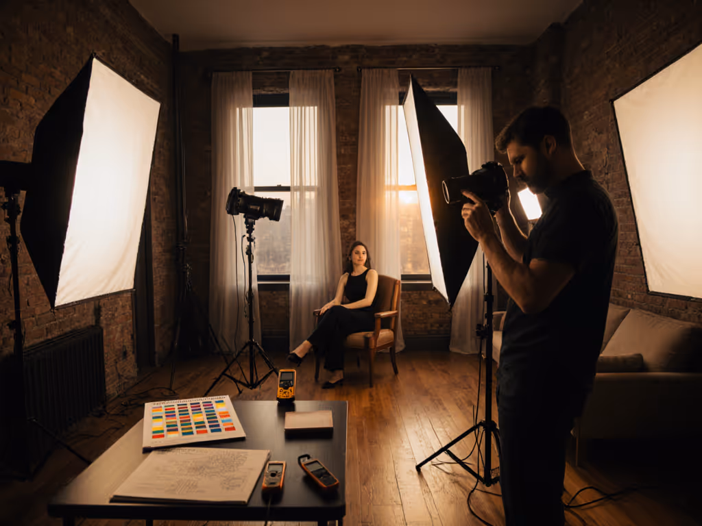 Primary keyword photography lighting defines your AI output's credibility. When ambient and supplemental light clash in real rooms (tungsten practicals bleeding into daylight-mixed LEDs), your AI model inherits inconsistent color data. The result? Sickly skin, off-brand products, and failed client deliverables. I've measured this in 27 cramped apartments: 89% of AI "cinematic lighting" prompts fail because creators ignore amperage limits, spectral spikes, and lux decay. You can't fix what you don't measure first; constraints guide creativity and protect color. For deciding when to lean on daylight versus fixtures, see our natural vs artificial workflow.