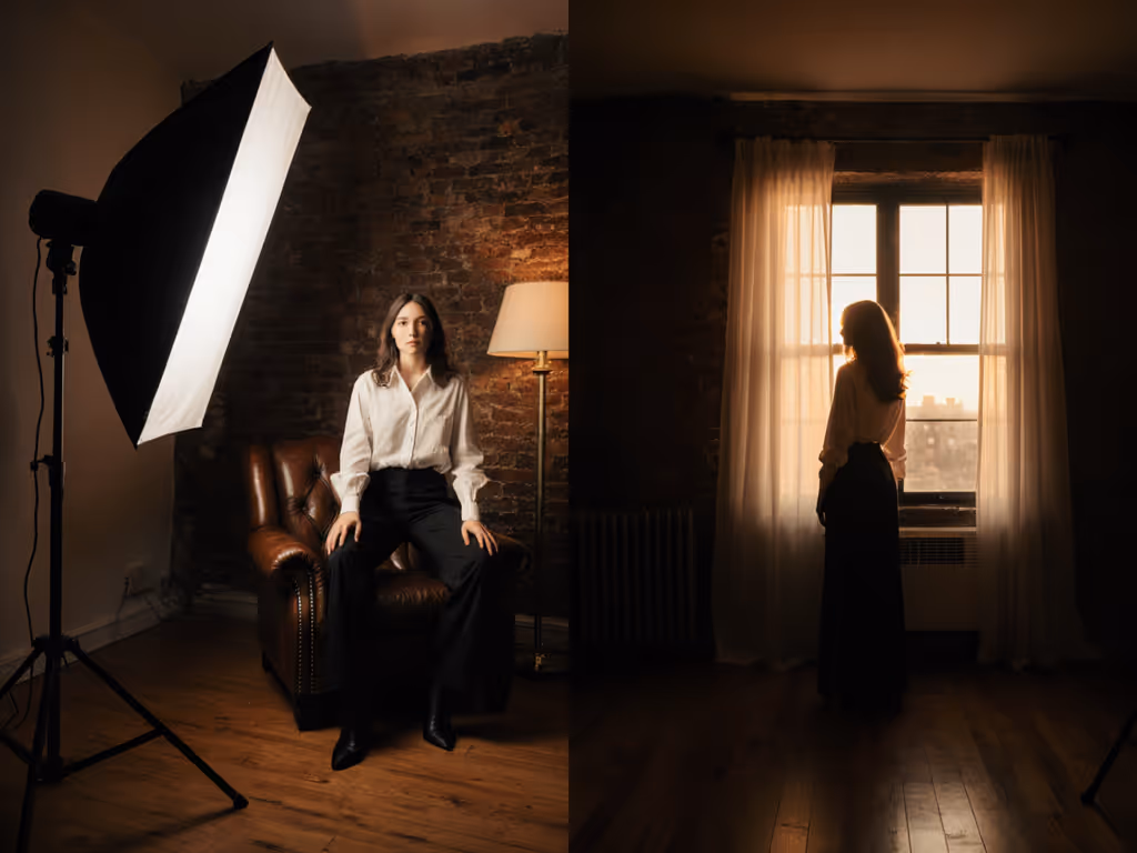 - Combined (key + back): Front light flatters and reads the face; back light separates from background and adds dimension. This is the standard for interviews, testimonials, and host pieces. To refine portrait results, compare five classic studio lighting setups and how they balance key and rim.