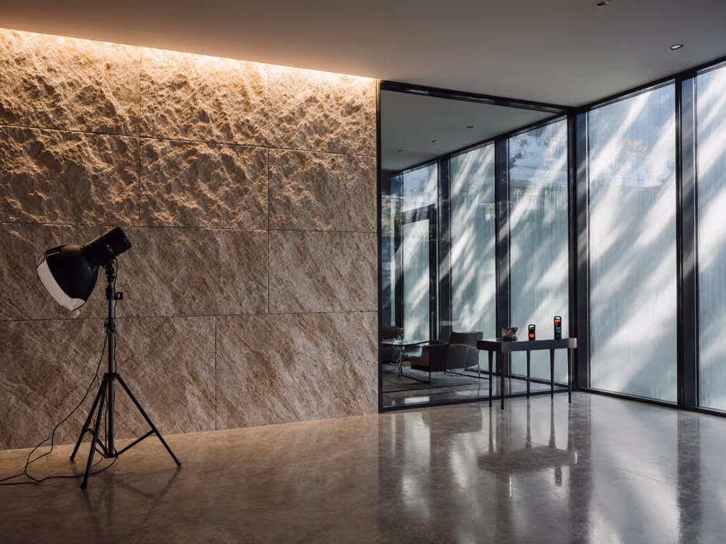 Glass wins for technical consistency but stone demands more creative problem-solving. When filming interviews against glass partitions, maintain a minimum 3:1 light ratio between your subject and background to prevent silhouetting (critical for hybrid shoots where both formats run simultaneously). If you're deciding how to light hybrid shoots, our continuous vs strobe guide clarifies when each approach preserves true color across photo and video. Stone requires more nuanced control: